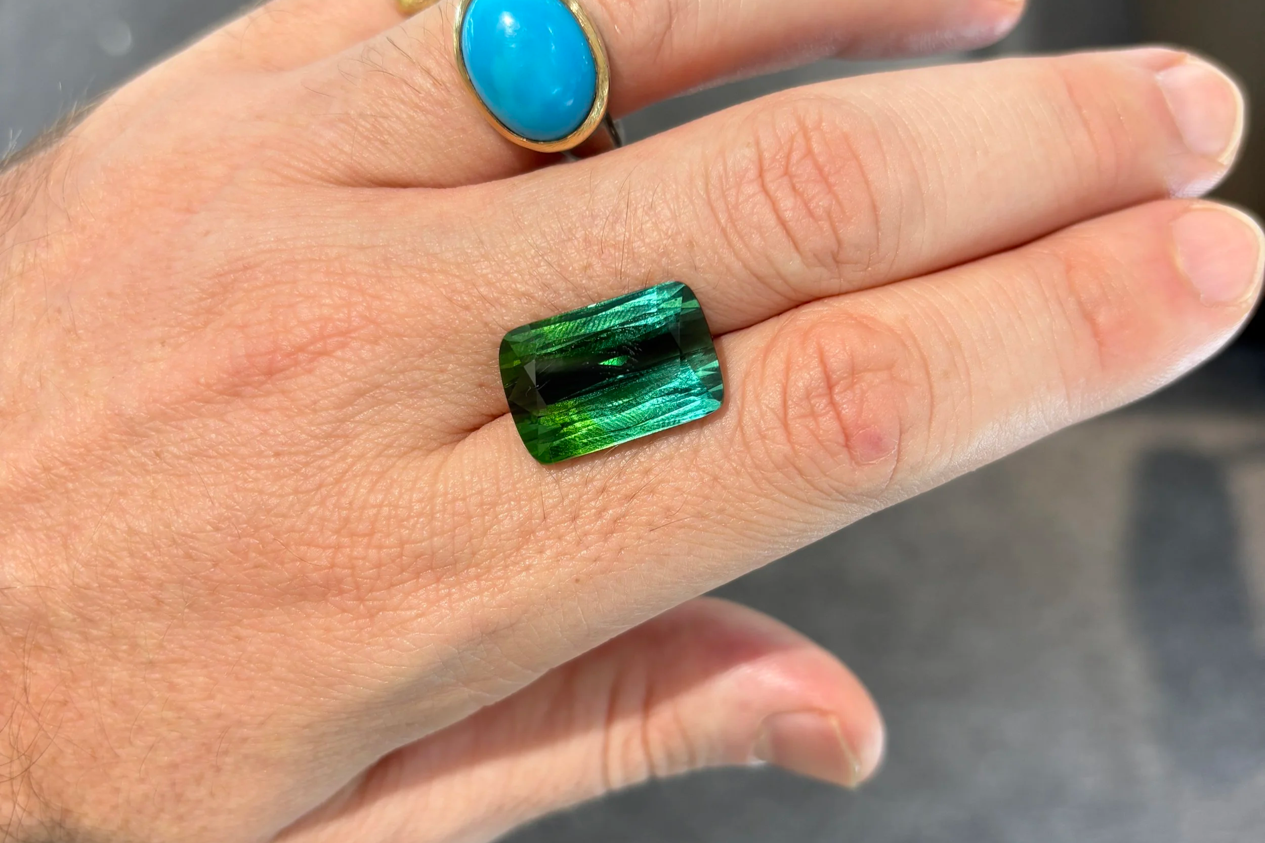 Leafy green and indicolite teal creates an enigmatic spectrum, crystallised for eternity. Faceted for our eyes to behold.
